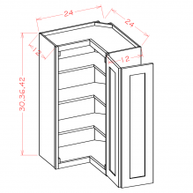 The Shaker Navy Blue 24" W x 36" H Wall Easy Reach is 12" deep. It comes with 1 bi-fold door and 2 shelves.